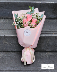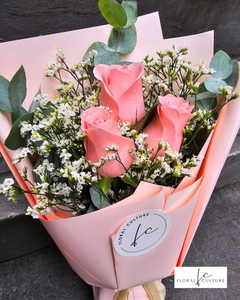 A sweet gesture that speaks volumes. Featuring three elegant roses complemented by delicate filler blooms, this bouquet embodies the beauty of love in its purest form.